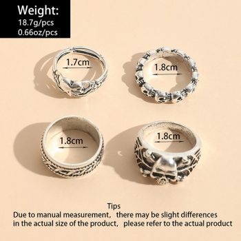 Gotiskt punk-ringset med dödskalle- och hjärtdesign, 4 delar