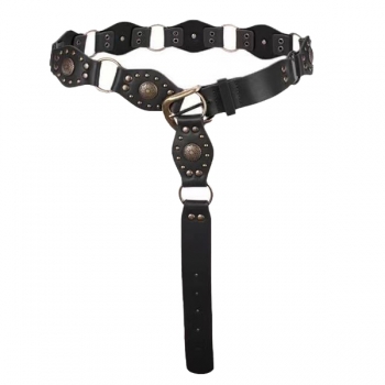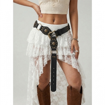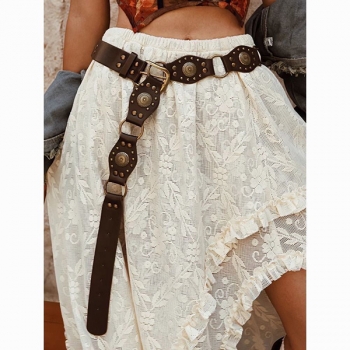 Bälte i syntetläder med nitar och O-ring, bohemisk festivalstil