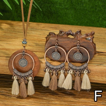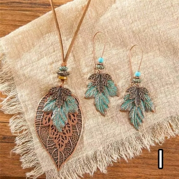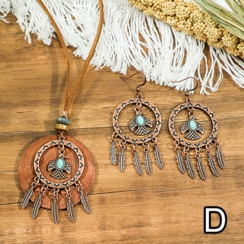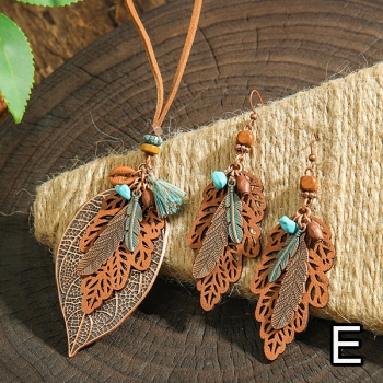 Bohochic smyckeset med tofs- och lövhängen inklusive halsband och droppörhängen
