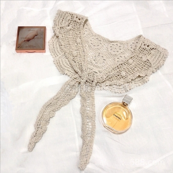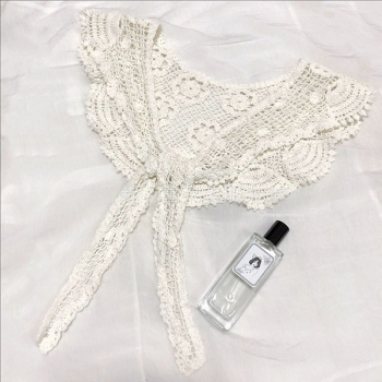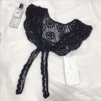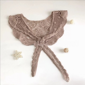 Boho virkad falskkrage, blommönstrad – avtagbar spetskappa för dam, virkad halskrage med knytband framtill över axlarna