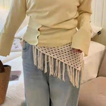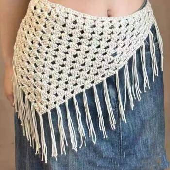 Virkad boho-höftscarf med fransar – triangelformat midjebälte för festival