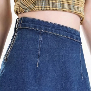 Boho denimskort med fransar – högmidjad, asymmetrisk kjol med inbyggda shorts