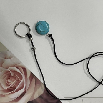 Boho-halsband med turkost lariathänge – minimalistiskt Y-halsband i svart lädersnöre med silverring
