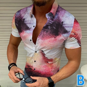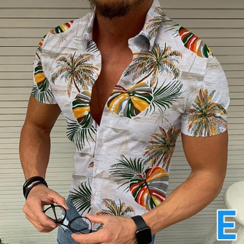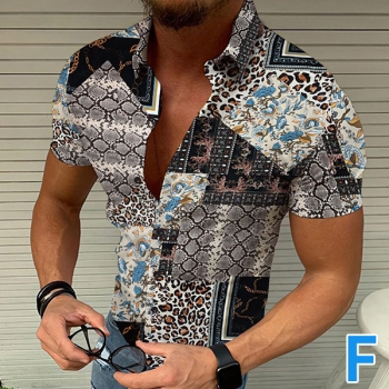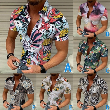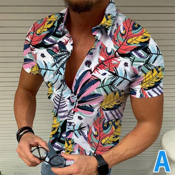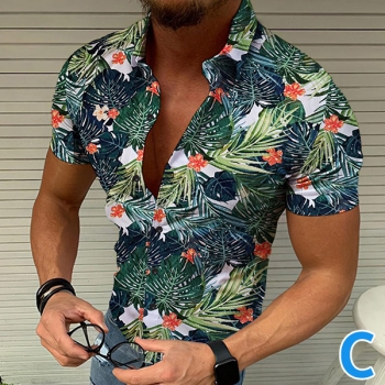 Casual Floral Printed Buttoned Stand Collar Shirt for Men