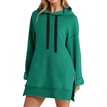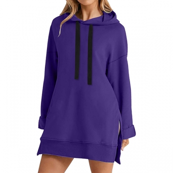 Damtröja – avslappnad enfärgad modell med dragsko och sidoslits, långärmad