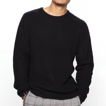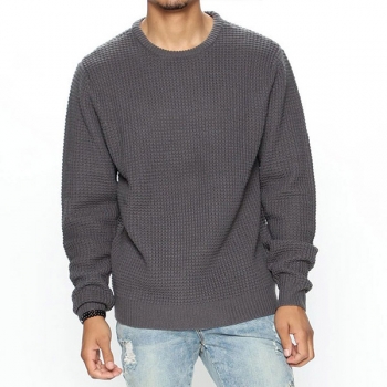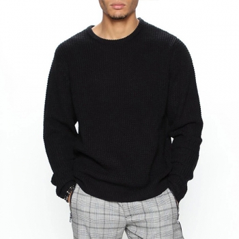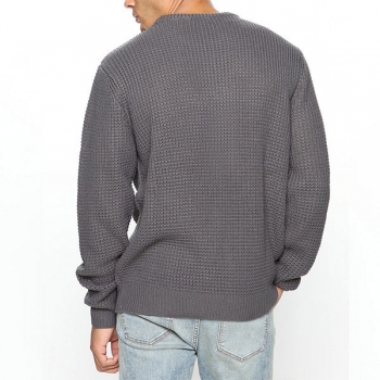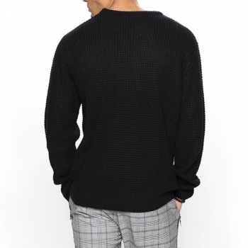 Casual Solid Color Round Neck Long Sleeve Knitted Pullover Sweater for Men (Size Run Small)