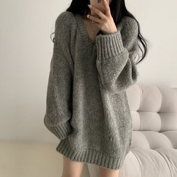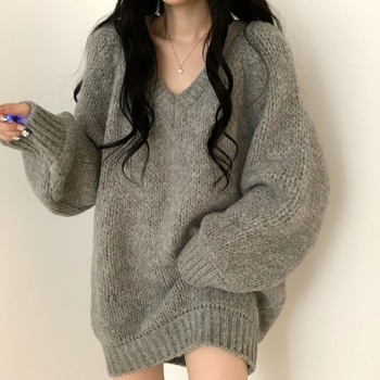 Stickad tröja med V-ringning och fladdermusärmar, långärmad, enfärgad och avslappnad passform