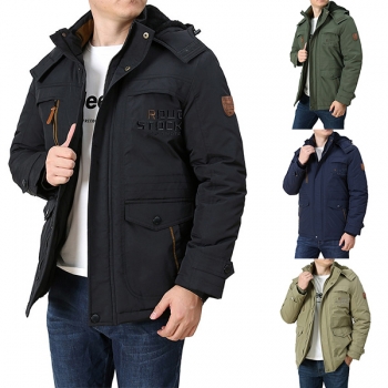 Casual Style Solid Color Long Sleeve Hooded Warm Padded Coat For Men