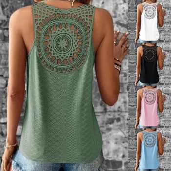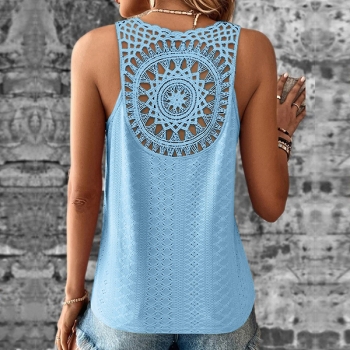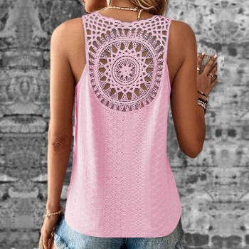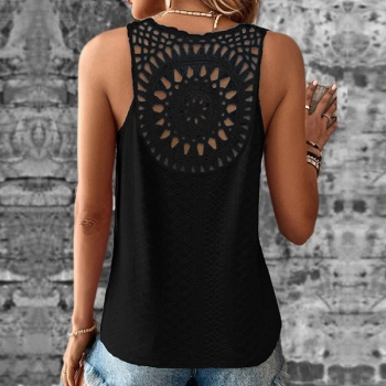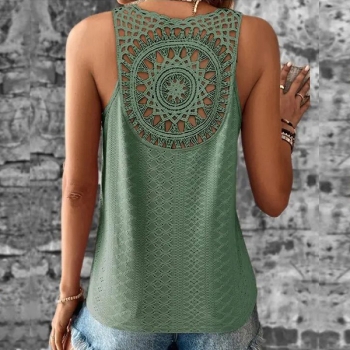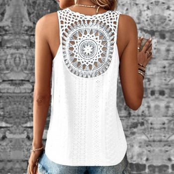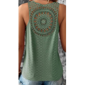 Ärmlös V-ringad Spetsdetaljerad Ryggöppen Casual Skjorta