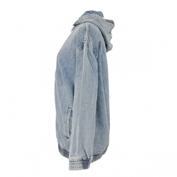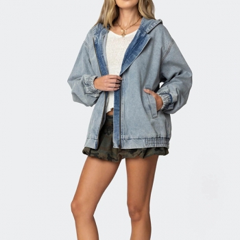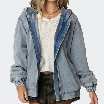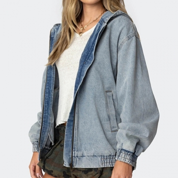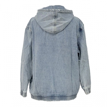 Jeansjacka med huva dam, vintage tvättad – avslappnad långärmad modell med dragkedja