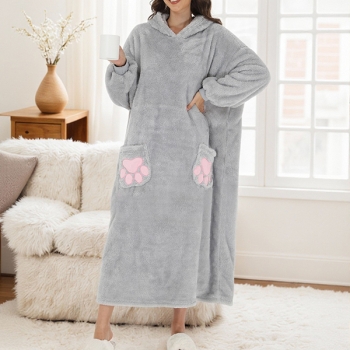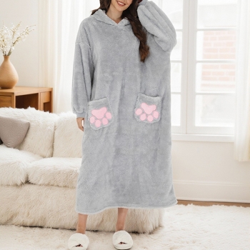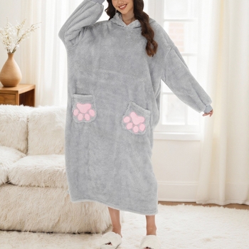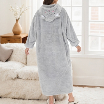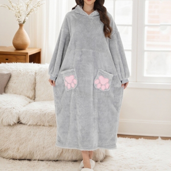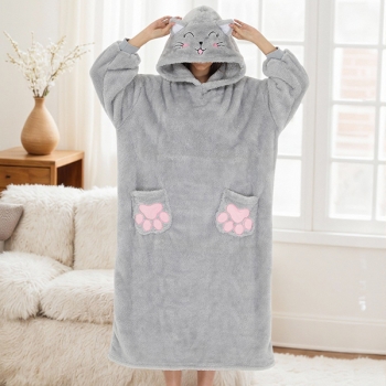 Kattbroderad sammetpläd med långa ärmar och vertikal ficka – perfekt TV-filt