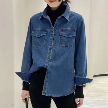 Jeansskjorta långärmad med polokrage – trendig vardagslook