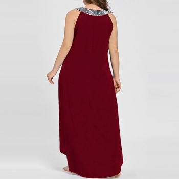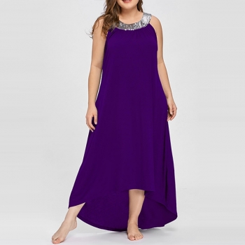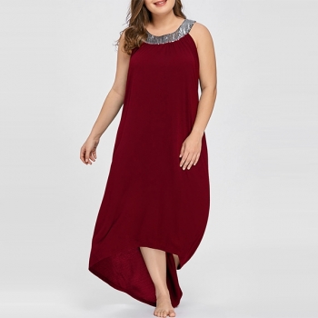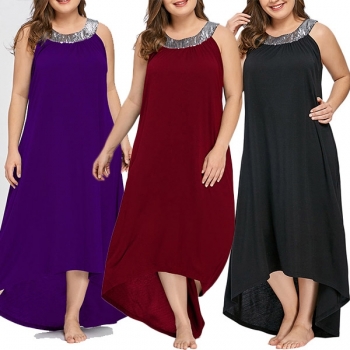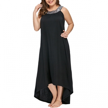 Fashion Sequin Spliced Sleeveless High-low Hem Oversized Plus-size Dress