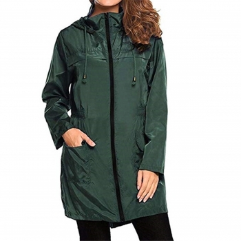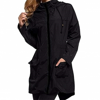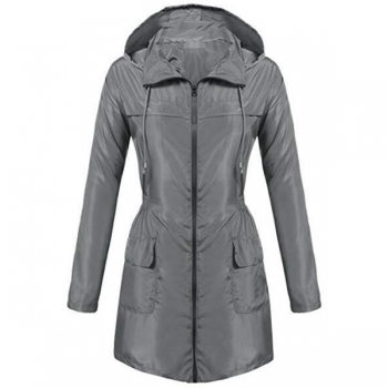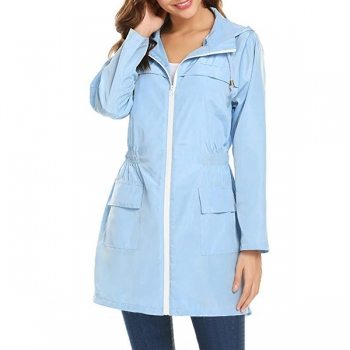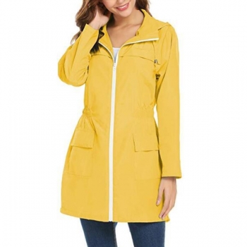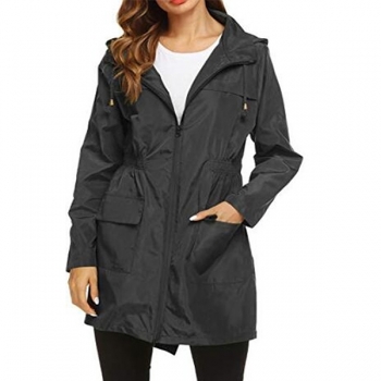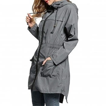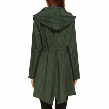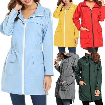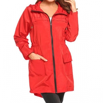 Moderiktig enfärgad vattentät rock med huva och justerbar midja