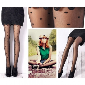 Nödvändiga Broderade Love Heart Stretch Tunna Leggings Strumpor