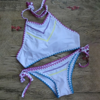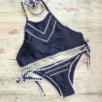 Sexy Contrast Color Printed Lace-up Halter Bikini Set