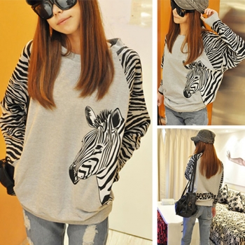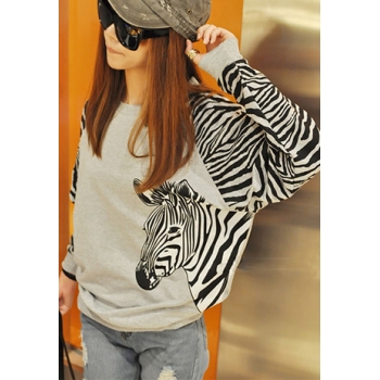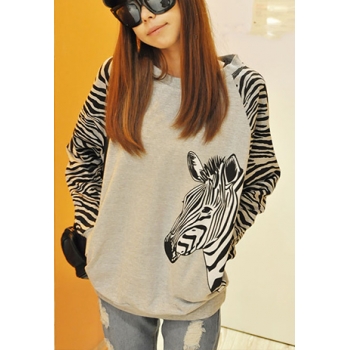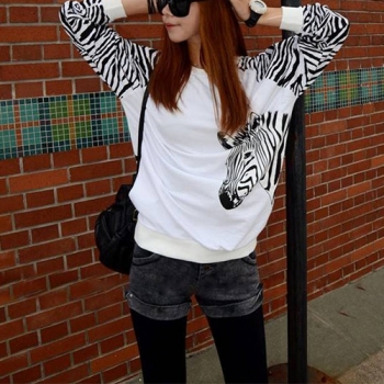 Fashion Zebra Stripes Round Neck Long Sleeve Loose Sweatshirt T-shirt