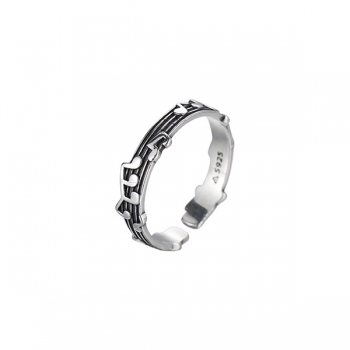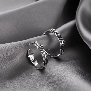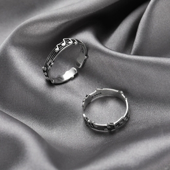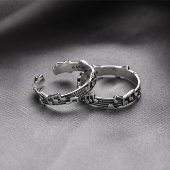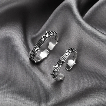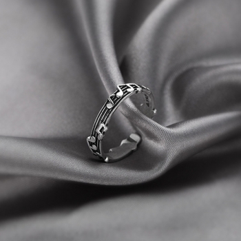 Elegant silverfärgad öppen ring med noter och musikmotiv