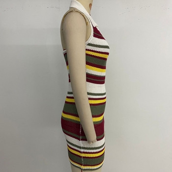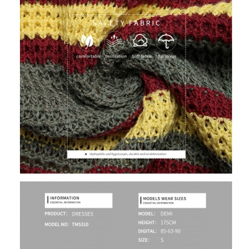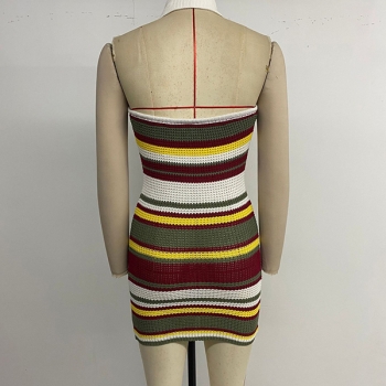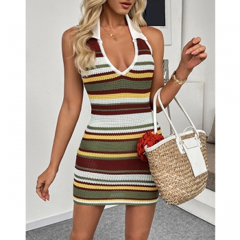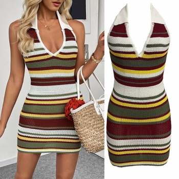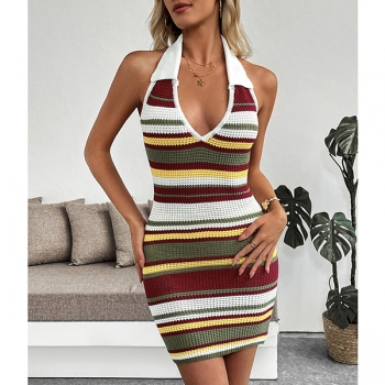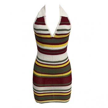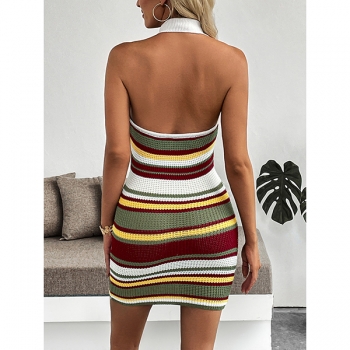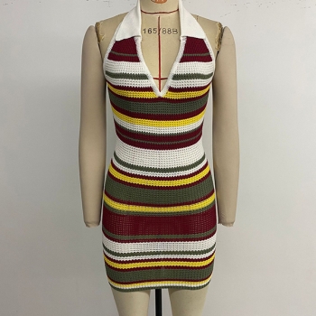 Moderiktig Kontrastfärgad Halterneck V-ringad Rygglös Bodycon Stickad Klänning