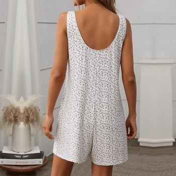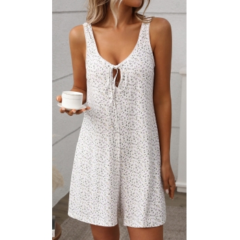 Bekväm blommig mönstrad spets split V-ringad pyjamas romper