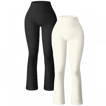 Höga bekväma utsvängda ribbade yogabyxor/träningsleggings