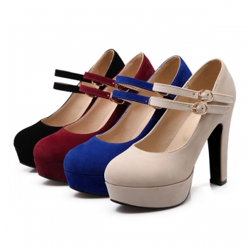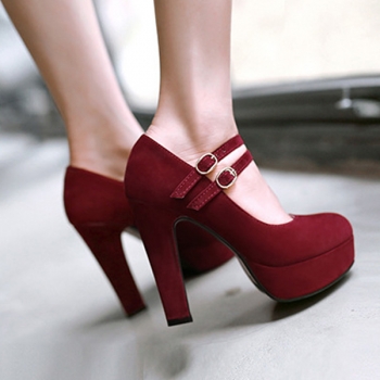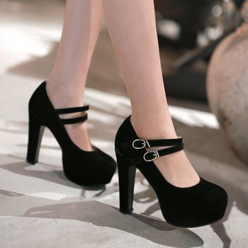 Criss Cross Strap Rund Toe Block Heel Platform Pumps