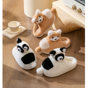 Varmfodrade plyschtofflor med rävmotiv och halkfri sula