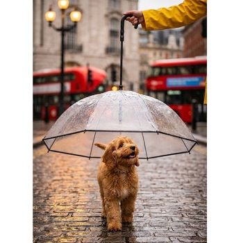 Hundparaply med koppel – valpvänligt regn- och snöskydd med C-handtag, böjbar stång och justerbar vinkel