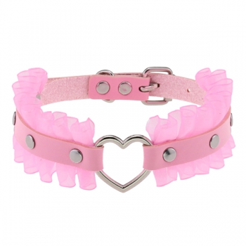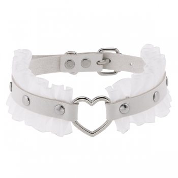 Stilrent halsband i svart spets och PU-läder med hjärtformad prydnad
