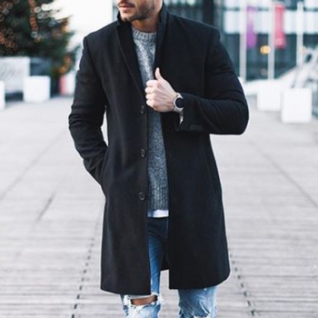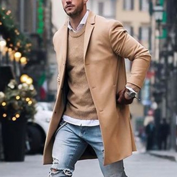 Elegant Solid Color Long Sleeve Notched Lapel Men's Overcoat