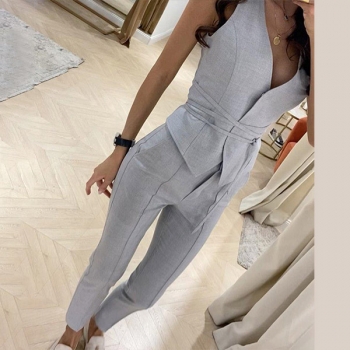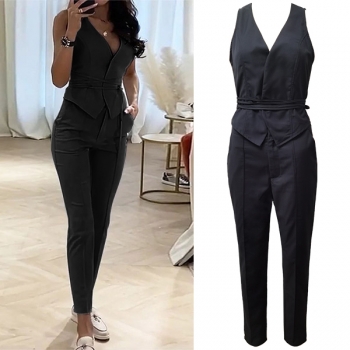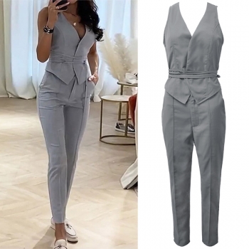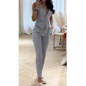 Elegant tvådelad sats med en självknytande väst och byxor.