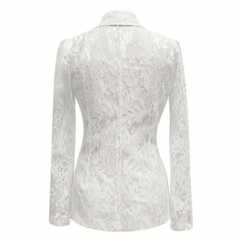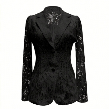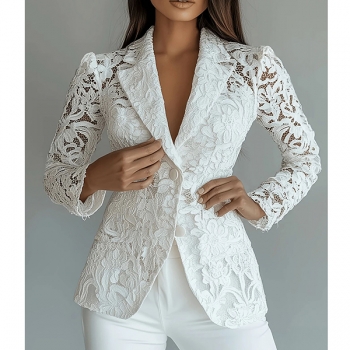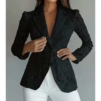 Damkavaj i smal passform med broderade kronbladsutskärningar och mjukt foder