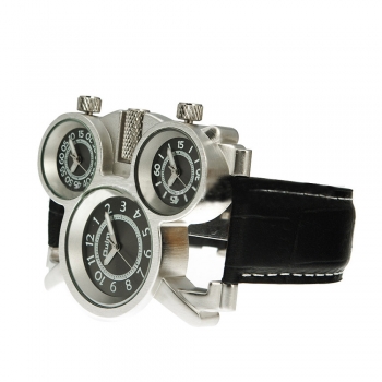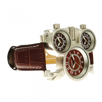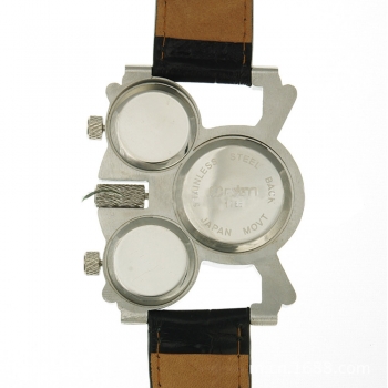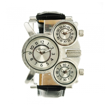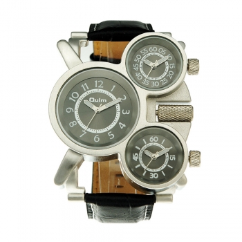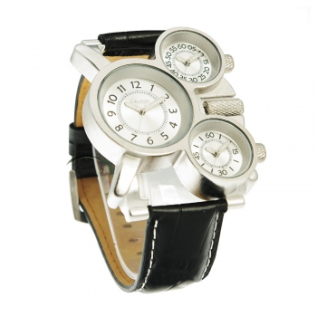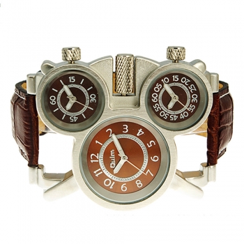 Fashion Leather Watchband Multi Time Zone Men Quartz Watch