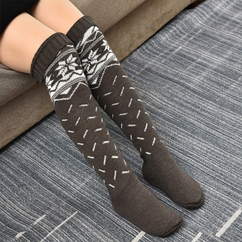 Fashion Contrast Color Printed Over-the-knee Knit Socks