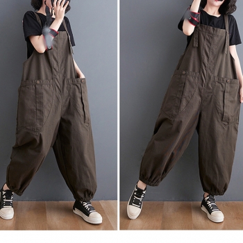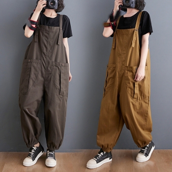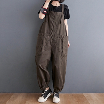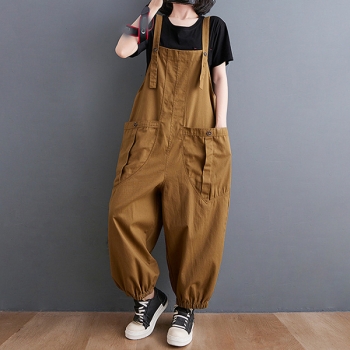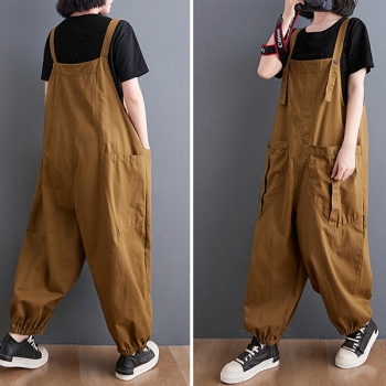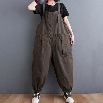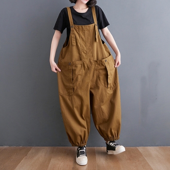 Moderiktig lös jumpsuit med lappfickor och justerbara axelband