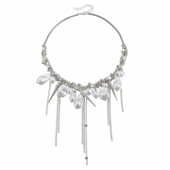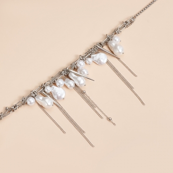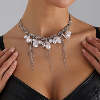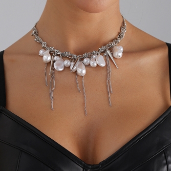 Mode Barock Pärlchoker med Silverkedja, Spike-detaljer och Tofs