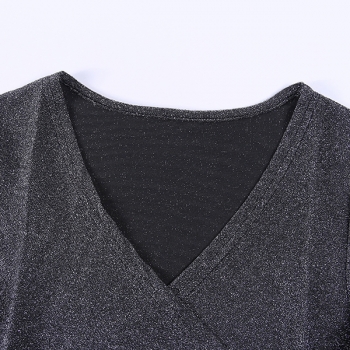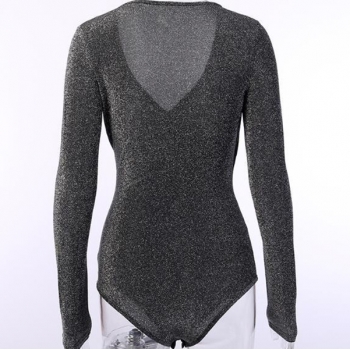 Body – trendig V-ringad, långärmad och rynkad med glittrande detaljer
