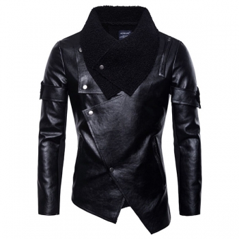 Herr PU-läderjacka med spänne – asymmetrisk, trendig design