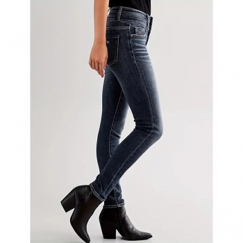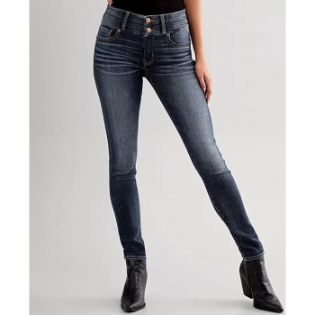 Skinnyjeans dam med hög midja och knappgylf – trendig stretchmodell