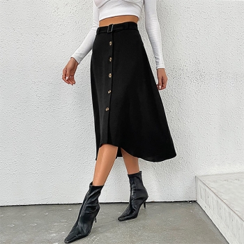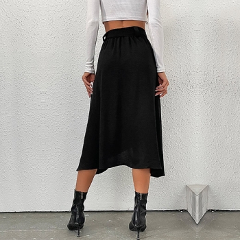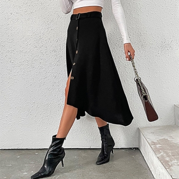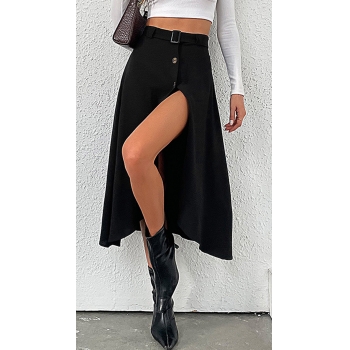 Svart damkjol med knappar och slits, asymmetrisk fåll