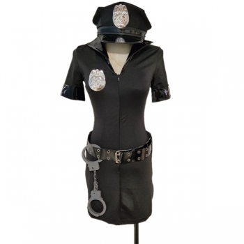Chic Mode Enfärgad Halvdragkedja Kortärmad Bodycon Svart Klänning för Cosplay Polis Kostym