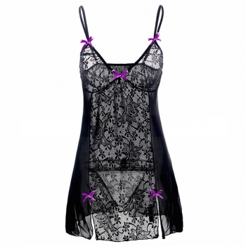 Modekläder - Kontrastfärgad Pyjamas Klänning med V-ringning, Slits och Bowknot