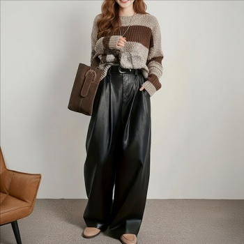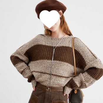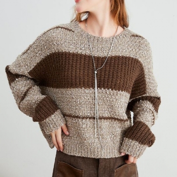 Stickad damtröja i kontrastfärg med rund hals och fladdermusärm – trendig modell