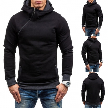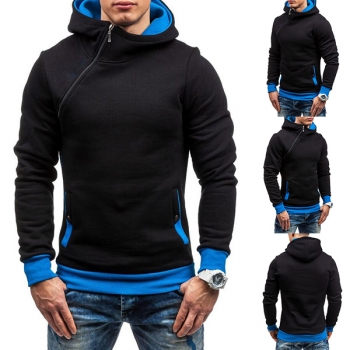 Herrhoodie i kontrastfärg, långärmad modell med diagonal dragkedja