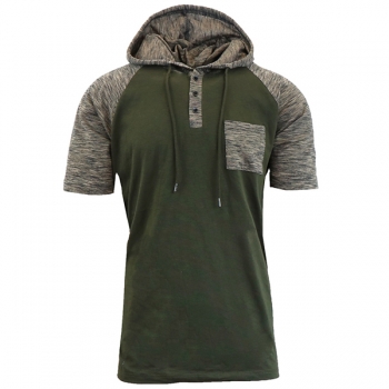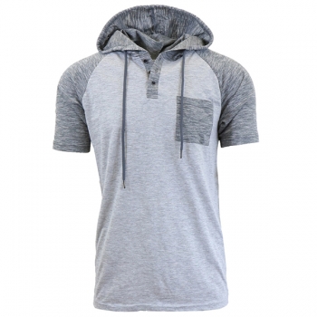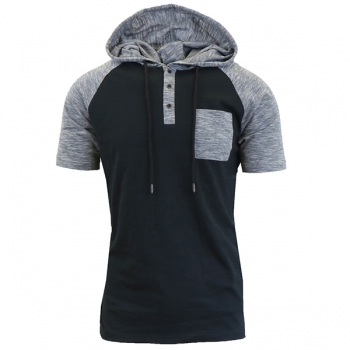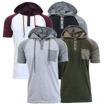 Fashion Contrast Color Short Sleeve Hooded Men's T-shirt