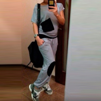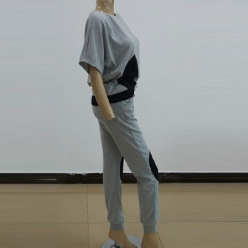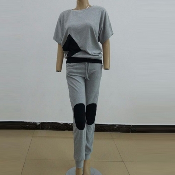 Fashion Contrast Color Short Sleeve Round Neck Sports Suit