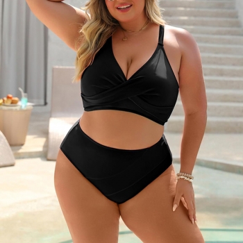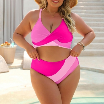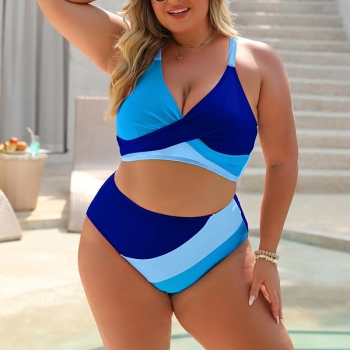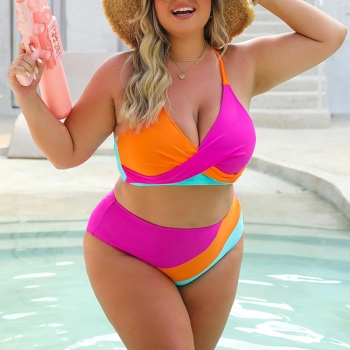 Modernt bikiniset i två delar med kontrastfärger, innehållande knytbar baddräktstopp och hög midjebadbyxa