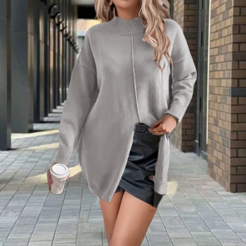 Moderiktig rundhalsad tröja med långa ärmar och framslits
