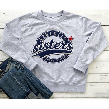 Rundhalsad långärmad tröja med bokstavstryck – trendig och perfekt för bästa vänner och systrar