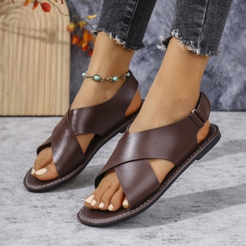 Trendiga kors- och remsandaler med platt design och snygga detaljer